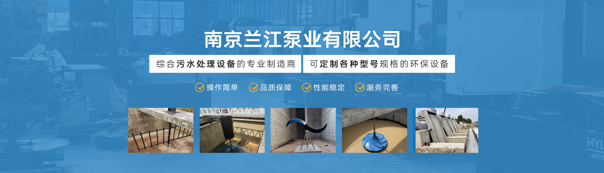 南京蘭江泵業有限公司致力于污水處理設備的設計與研發,生產、銷售與一體的專業制造商。公司座落于南京北郊、寧通高速旁,風景怡人的江北新區,六合區橫梁街道新禹路18號。公司主導產品有:混合攪拌系列:QJB潛水攪拌機、FQJB型浮筒攪拌機.潛水推流器.立式環流攪拌機.雙曲面攪拌機.漿式(框式)攪拌機。潛水曝氣系列:射流曝氣機、離心曝氣機、QFB型浮筒曝氣機.浮筒攪拌曝氣機、深水曝氣機。攔污輸送系列:機械格柵、無軸螺旋輸送機、螺旋壓榨機、沉砂池除砂機、砂水分離器。刮吸泥機系列:周邊傳動、中心傳動、行車式、虹吸式等刮吸泥機、潷水器、閘門、地埋式污水處理設備。潛水泵系列:AS、AV、WQ,AF型潛污泵,QJB-W型污泥回流泵,ZQB...